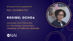 Rosibel Ochoa is a leader in championing innovation at NAI Member Institution the University of California, Riverside. As the Associate Vice Chancellor for Technology Partnerships, she and her team work to accelerate economic development by transferring UC Riverside research from the lab to the private sector, facilitating academic-industry collaborations, and encouraging innovation and entrepreneurship on campus and throughout the region.